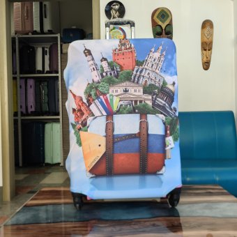 Наши разноцветные чехлы для чемоданов не только избавят от необходимости в упаковке пленкой в аэропорту (экономия в среднем 500 рублей за полет), но и легким движением руки преобразят чемодан и придадут ощущение, что у вас появился еще один красивый чемодан. Сам чехол на 98 % состоит из эластичных полиэстера и спандекса, которые превосходно тянуться, не искажая рисунок и цвета. Чехлы для чемоданов защитят от пыли и грязи, легко стираются и очень просты в «надевании» :)